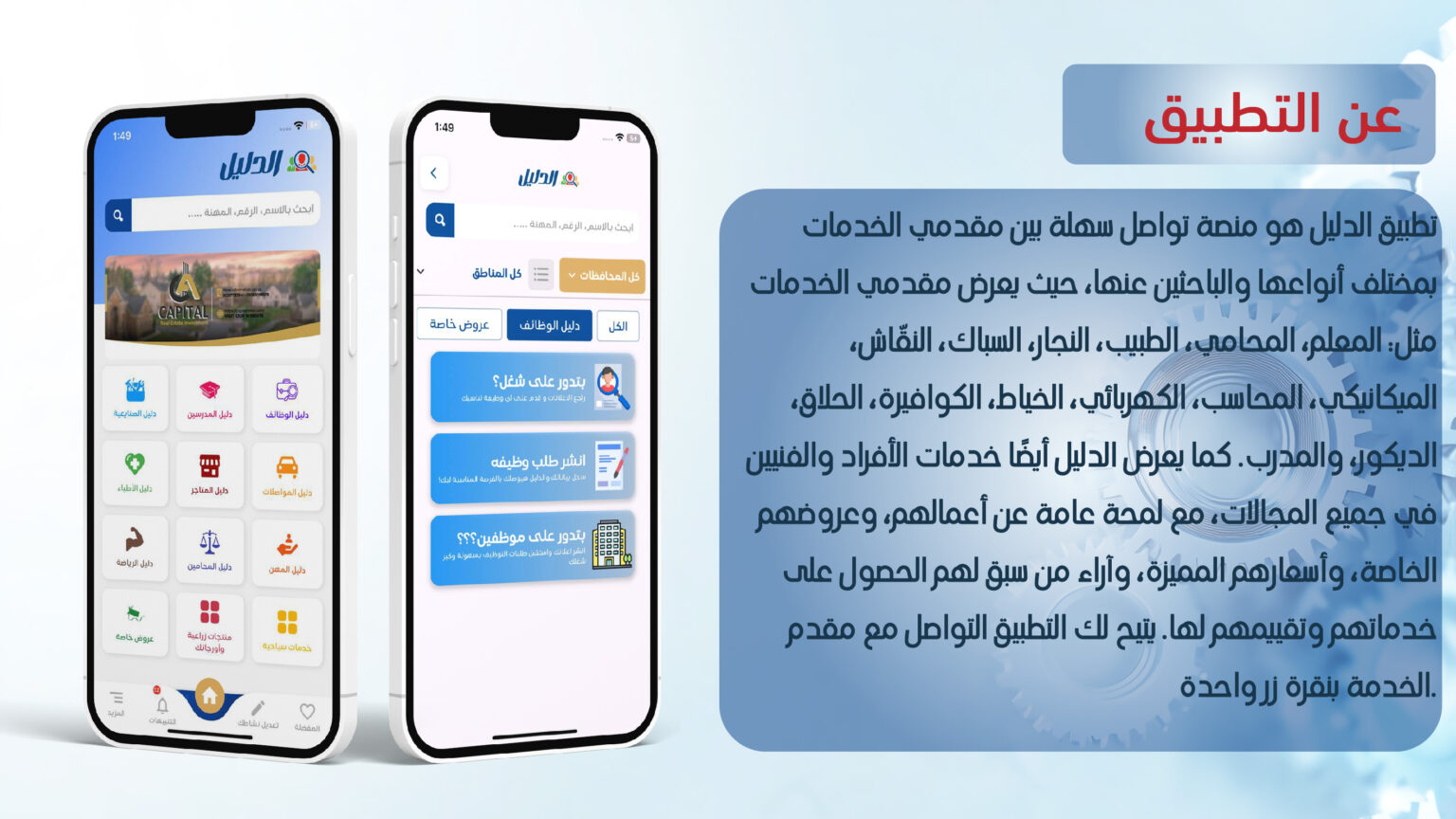 13يوليوApps تطبيق الدليل هو دليلك الذكي للعثور على مختلف مقدمي الخدمات بكل سهولة، سواء كنت تبحث عن معلم، طبيب، محامي، نجار، أو غيرهم.يوفر لك لمحة سريعة عن أعمالهم، أسعارهم، العروض المتاحة، وتقييمات العملاء، مع إمكانية التواصل الفوري معهم بضغطة زر. الالوان والخطوط المستخدمة في تصميم تطبيق الدليل صفحات من تطبيق الجوال لزيارة التطبيق ومعرفة المزيد من الخصائص Downloadتطبيق الدليل android Downloadتطبيق الدليل ios Share article: app تطبيق الدليل تطبيق جوال16